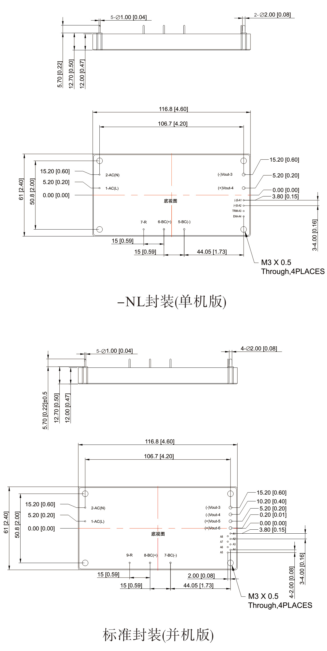 1. 所有尺寸标注單位爲毫米(英寸)。