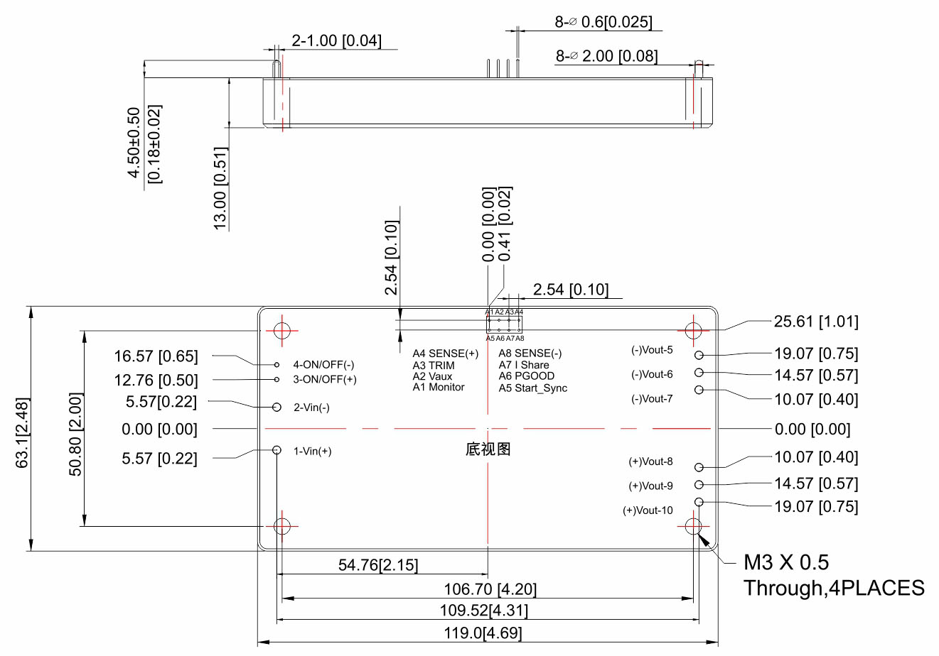 3、 3-4、引腳直徑1.00mm (0.04in) ;