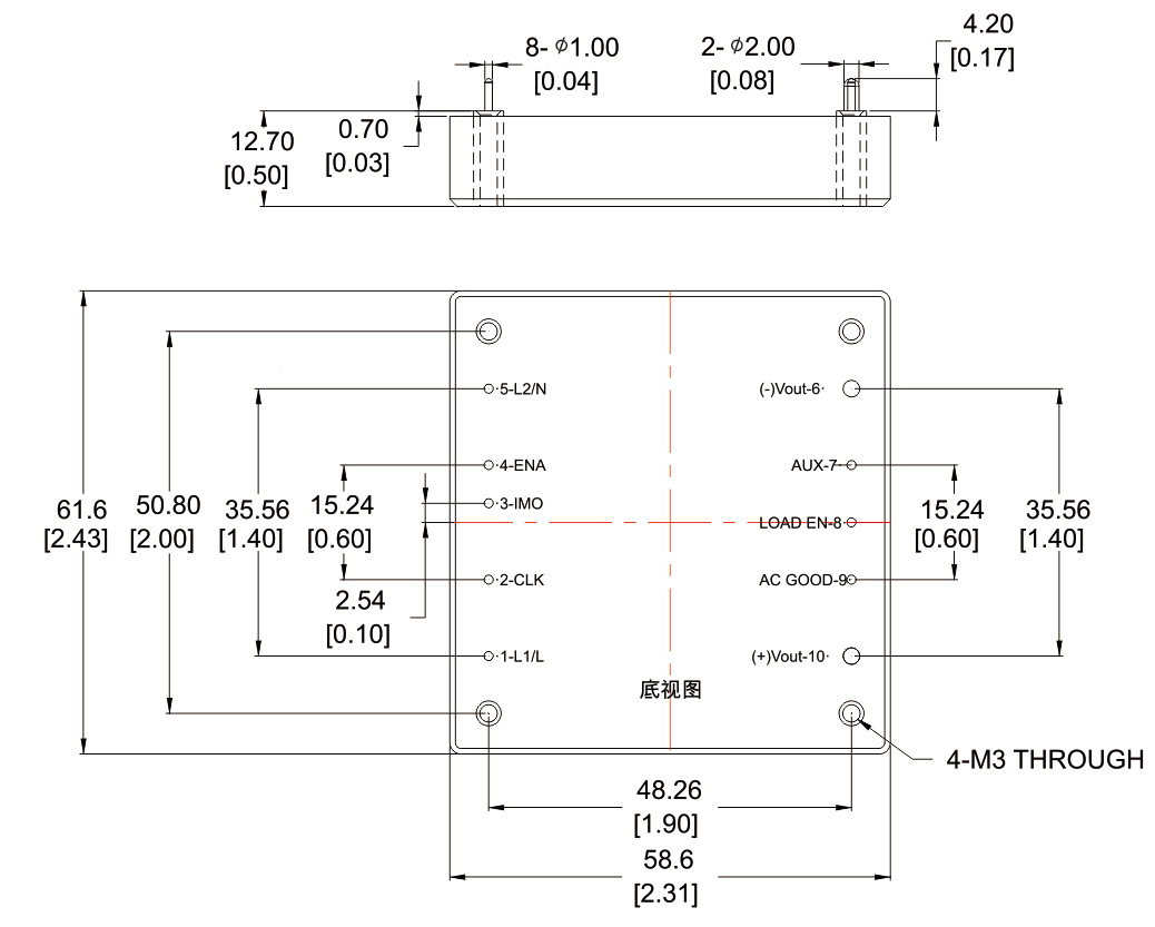 1. 所有尺寸标注單位爲毫米(英寸)。