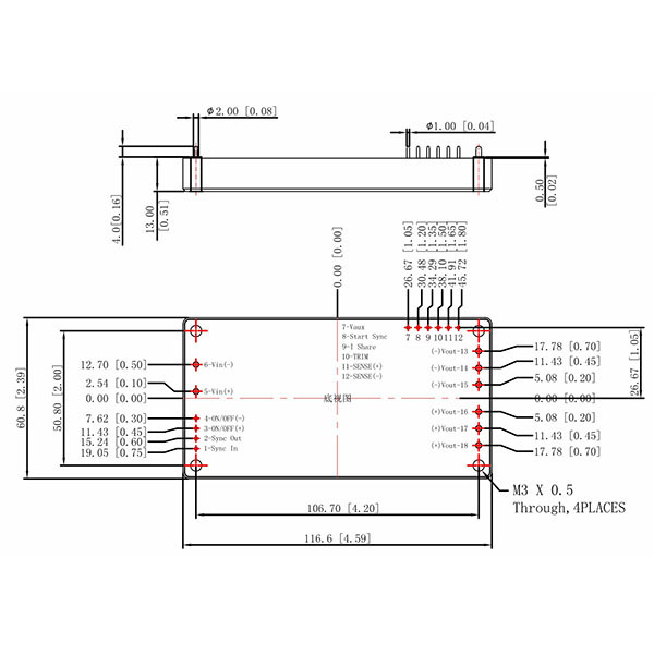 1. 所有尺寸标注單位爲毫米(英寸)。